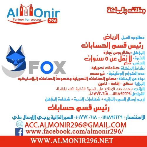 • يفضل العمل علي برنامج ERP فوكس