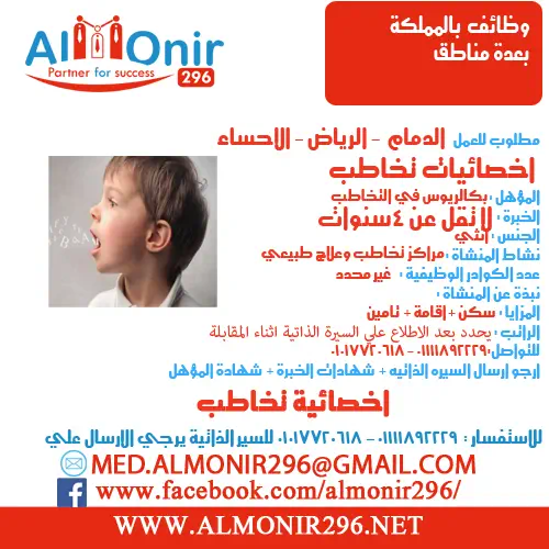 قطاع الشركة: مجموعة مراكز تخاطب وعلاج طبيعي