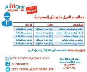 مطلوب لشركة تعمل فى مجال المصاعد بالرياض