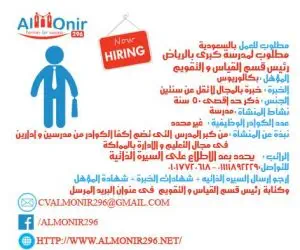 careers@almonir296.netيمكنك متابعة كافة الوظائف المعلن عنها وتسجيل اعجابك بصفحتنا على موقع التواصل الاجتماعى Facebook :www.facebook.com/almonir296#فرص_عمل #وظائف_خالية #سفر_للخارج#المنير_لالحاق_الكوادر_المصرية_للخارجwww.almonir296.net